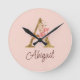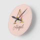 Reloj Redondo Mediano Nombre personalizado Blush rosas rosadas hoja dora
