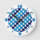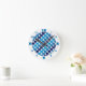 Filas diagonales de corazones en tonos azules de acento este reloj de pared.