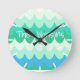 Reloj Redondo Mediano Olas marinas azules, verdes y Verde azuladas