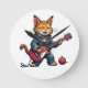 A graphic image of a cute white kitten playing a pink guitar The kitten's expression is playful,