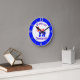 Muestra tu orgullo por el fiesta demócrata con este reloj rojo, blanco y azul. El centro incluye un burro demócrata y el texto, "Demócrata Orgulloso". El anillo azul exterior tiene números blancos para marcar cada hora. El diseño se ve mejor en los relojes redondos, pero también se puede usar en forma cuadrada.