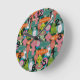 Este reloj de pared tiene un diseño Navidad de varios adornos en muchos colores.
