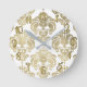 Reloj Redondo Mediano Oro Glam y Damask Blanco Moderno Personalizado