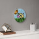 Pequeñas ovejas amarillas divertidas con una cara rosada, destacando en un campo de dientes de león, en un día luminoso y soleado. Personalizado digital original de Taylor Addams. Gran reloj para el dormitorio de un niño. ¡Nos va a encantar!