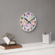 This wall clock has a Bauhaus design of overlapping rectangles in various colors.