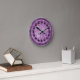 Un centro con estampado violeta y blanco rodeado de puntos negros. Diseño creado a partir de una tapa de alcachofa de hormigón con un efecto de pintura al óleo. Horario muy de moda y original.