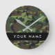 Reloj Redondo Mediano Patrón de camuflaje verde, nombre, personalización