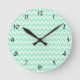 Reloj Redondo Mediano Patrón de Chevron blanco y verde de menta