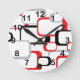 Reloj Redondo Mediano Patrón de cuadrados retro rojo blanco gris negro
