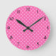 Reloj Redondo Mediano Patrón de puntos de polka blanco y rosa caliente