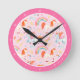 Reloj Redondo Mediano Patrón de unicornio rosado de niñas con nombre