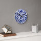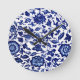 Reloj Redondo Mediano Patrón floral azul marino oscuro chino sobre blanc