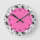 Reloj Redondo Mediano Patrón negro, blanco y rosado caliente
