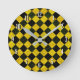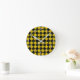 Reloj Redondo Mediano Patrón negro y amarillo a cuadros