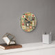 Reloj Redondo Mediano Patrón retro con platos de cocina para el desayuno