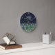 Un bosque de árboles de navidad y un cielo nocturno estrellado son el contexto para el texto, "paz en la tierra", en este reloj de pared numerado temático del día de fiesta.