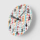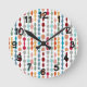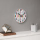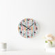 Este reloj de pared tiene un diseño moderno de mediados de siglo de círculos y óvalos unidos en colores retro unidos en un campo de blanco.