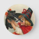 Reloj Redondo Mediano Pequeña Bruja de Halloween de época con gato negro
