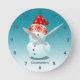 Reloj Redondo Mediano Pequeño y lindo hombre de nieve con Gorra Navidad