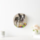 Reloj Redondo Mediano Perro de Boston Terrier jugando con juguetes