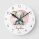 Personalizar este lindo reloj de un elefante de acuarela de fondo rosado. Ideal para una guardería, una habitación para niños o cualquier lugar en el que sus pequeños pasen el día.