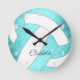 Reloj Redondo Mediano personalizado turquesa brillante vóley en la sala