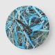 Un diseño colorido de red de pesca y una cuerda azul brillante de un barco y almacenado en el espigón del puerto.