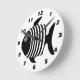 Reloj Redondo Mediano Pescado Negro Y Blanco