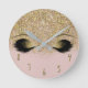 Reloj Redondo Mediano Pestañas Glam Modernas de Purpurina Rosa y Dorado