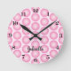 Reloj Redondo Mediano Pink Girly Dots Black Script Name Wall Clock