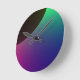 This awesome clock features a digitally created image that resembles the crescent of a dark planet surrounded by a cosmic aurora of green, blue, purple and pink.