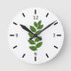 Reloj Redondo Mediano Planta moderna de laurel verde deja en blanco