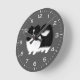 Un divertido reloj de pared de Pomerania para la casa o la oficina. Hace un regalo original para los amantes de los partidos blancos y negros. Visite el mundo doodle de Jenn para ver relojes más decorativos y decoración de la casa con temática animal.