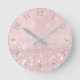 Reloj Redondo Mediano Purpurina gris plateado Rubor rosa rosado mínimo