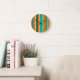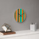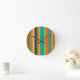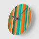 Este reloj tiene un diseño Bauhaus de rayas en tonos naranja y verde azulado.