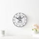 This professional realtor office clock is custom made with your real estate company name under the modern cursive script. This trendy minimalist white and black realty business decor features a house logo image that can be replaced with your own for home builder or realty agent company marketing.