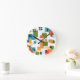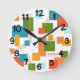 Este reloj de pared presenta un diseño moderno de rectángulos y líneas de los colores de los años 60.