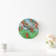 Reloj Redondo Mediano Red and Green Flower Pattern