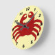 This crab design wall clock is a timekeeping device designed to hang on a wall, serving as both a functional tool and a decorative focal point for a room. Made from acrylic and features a pre-installed backside hanging slot for easy hanging and a non-ticking design. You can customise this wall clock with any text of your choice. Should you require any help with customising then contact us through the link on this page. Red crab design wall clock