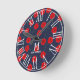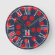 Reloj Redondo Mediano Red Poppy Flowers & Navy Blue | Family Monogram