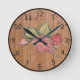 Reloj Redondo Mediano Red Rose On Wooden Background