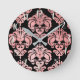 Reloj Redondo Mediano Rosa Gold Pink & Black Damask Moderno personalizad