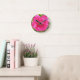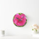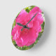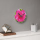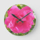 Un reloj redondo con una foto de una rosa rosada en la cara.