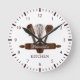 Rustic kitchen clock with baking utensils illustration in rustic wood texture..Personalize with name.