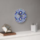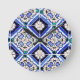 Reloj Redondo Mediano Rústico Azulejo Patrón Español Azulejo Navío Blanc