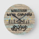 Una graciosa cita de "Lo que sea, estamos acampando" en un fondo rústico de tablas de madera de deriva.