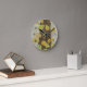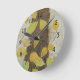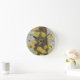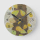 Un dibujo a lápiz de color de las hojas de haya dorada en otoño adorna este reloj.