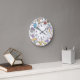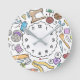 Quirky wall clock with sewing and craft themed doodles pattern ideal for your home craft/sewing room.