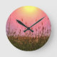 Gräser auf der Wiese mit rosa Hintergrund Sonne