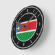 South Sudan Flag Elegant Round Clock with the South Sudan flag positioned in the middle and lovely white clock numbers on the clock edge. Delightful black background with the white oval elements finalize the design putting emphasis on the elegance. Beautiful combination of black and white with the skillful integration of the national flag colors make this clock the perfect gift and the great show piece on the wall. © 2022 CountriesOfTheWorld